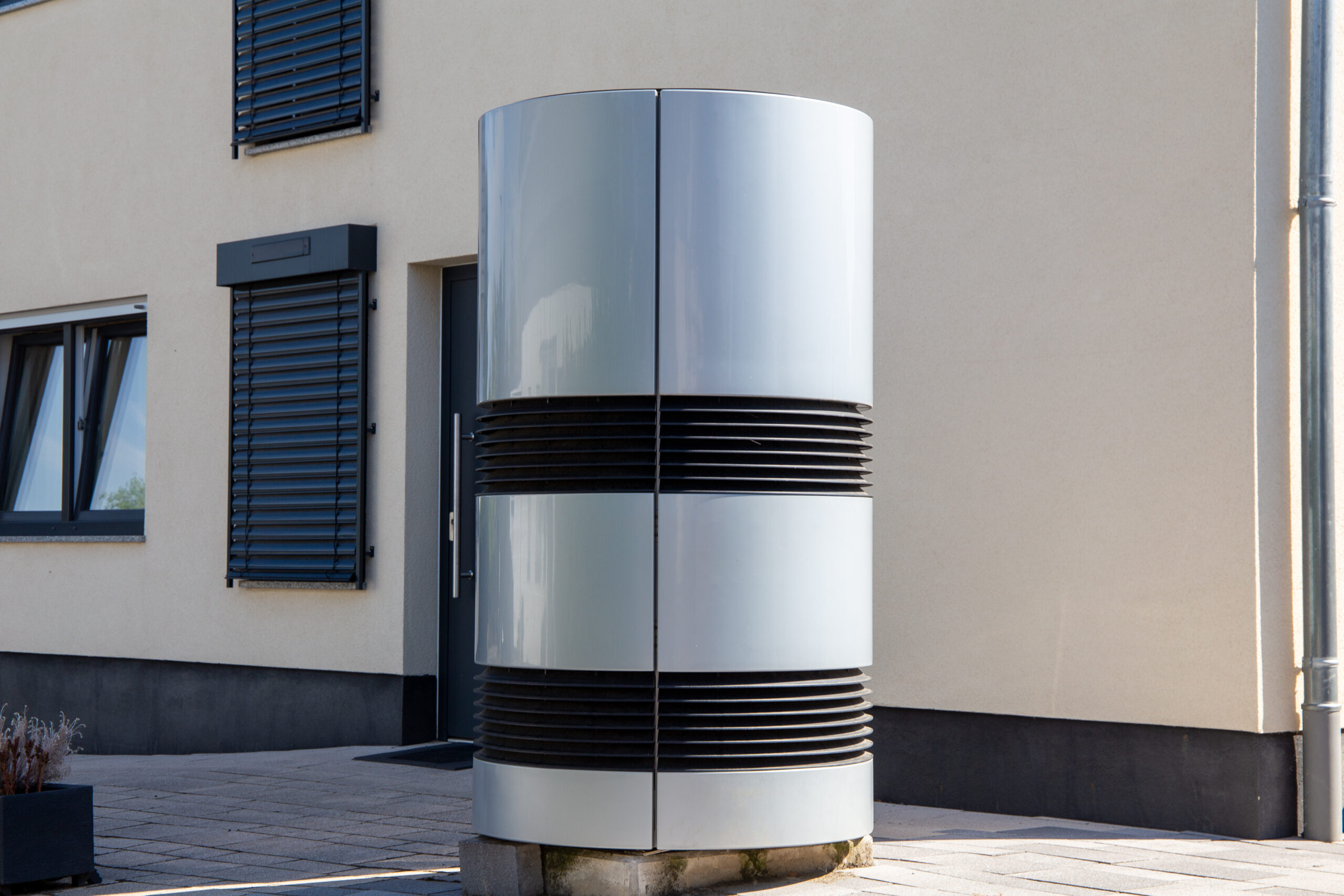 Luft- und Wasserwärmepumpe an einem neuen Wohnhaus